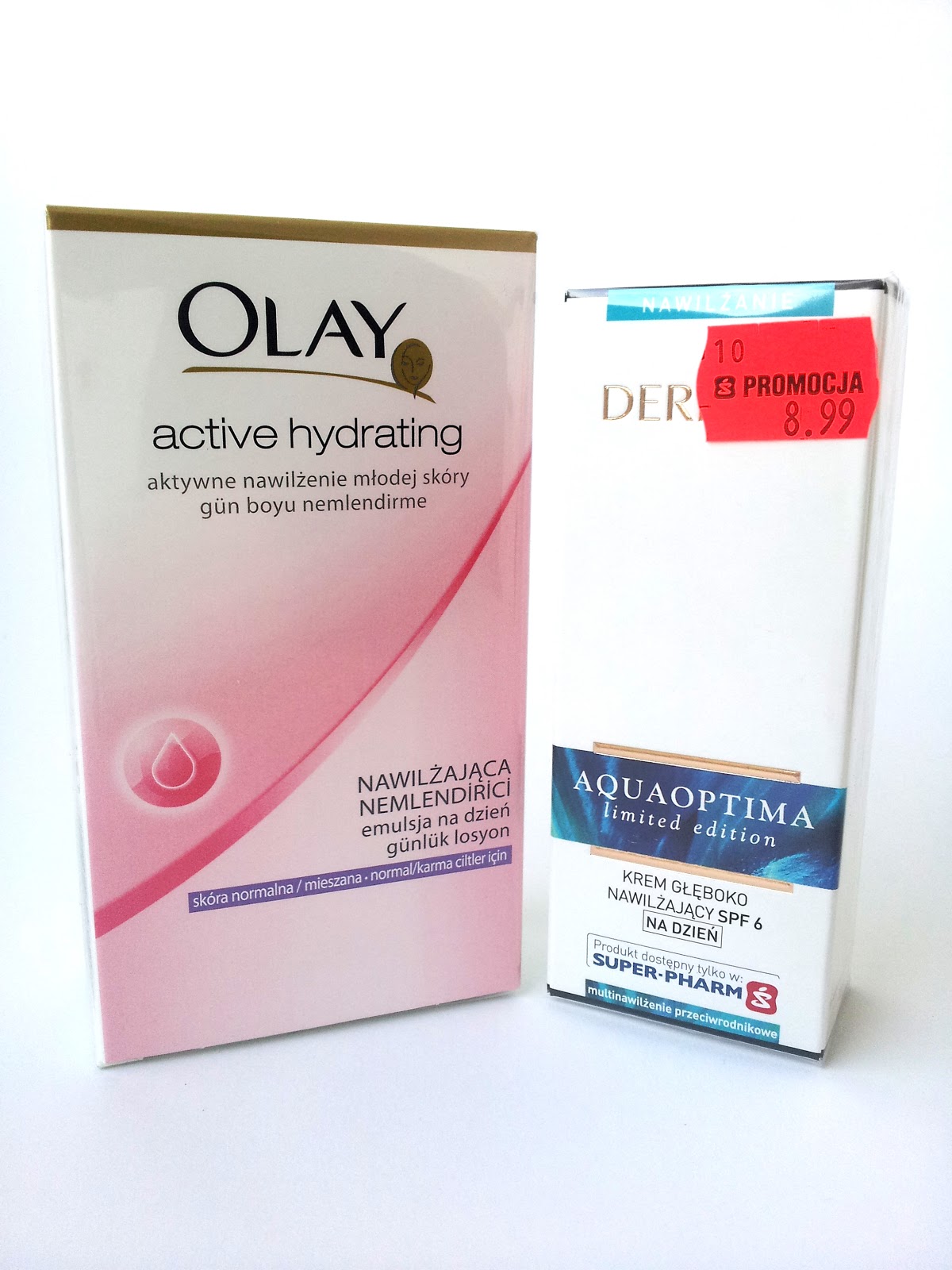 Emulsja Olay Active Hydrating do cery normalnej/mieszanej i krem głęboko nawilżający na dzień Dermika Aquaoptima z SPF 6. Pierwszy produkt był i tak na mojej liście zakupów, ponieważ czytałam, że ma przyjemną, lekką konsystencję, co bardzo lubi moja buzia. Producent zapewnia, że "Aktywna emulsja na dzień OLAY Active Hydrating nawilża i chroni młodą skórę w ciągu dnia. Łatwo się wchłania nie pozostawiając tłustej warstwy. Stanowi doskonałą bazę pod makijaż" (informacja na opakowaniu). Jak sprawdzą się obietnice sprawdzę w przyszłym miesiącu, a produkt na pewno pojawi się jeszcze na blogu w recenzji.
