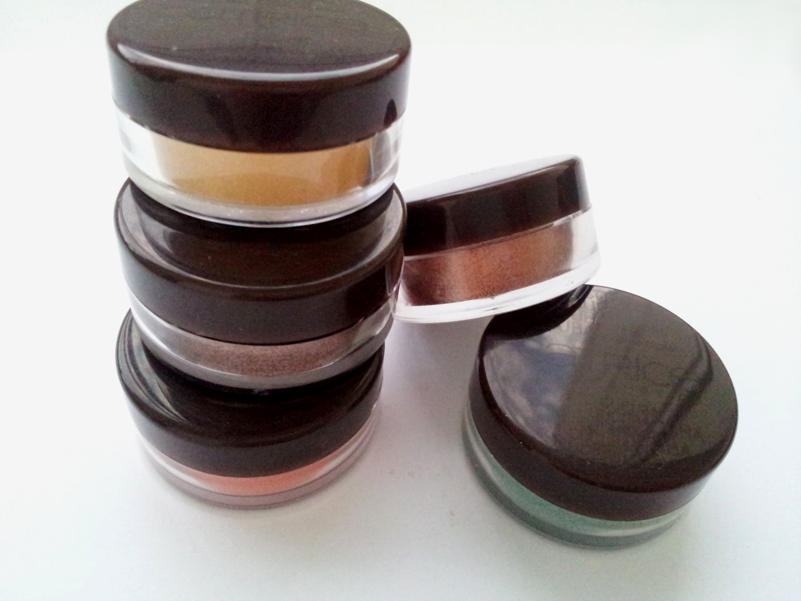 Każde pudełeczko ma 2 g i zostało wyprodukowane w Polsce, a jego data ważności to 24 miesiące od daty otwarcia. Po otwarciu wieczka widać sitko o dość dużych oczkach, przez które (o dziwo!) wydostaje się niewiele produktu. Cienie są dość drobno zmielone, dobrze trzymają się pędzla i nakładane ruchem wklepującym osypują się w niewielkim stopniu. Na bazie spokojnie wytrzymują cały dzień, chociaż po około 5 godzinach kolory zaczynają blednąć.
