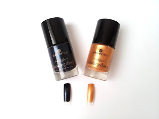 Minimalistycznie, prawda? Róż wydał mi się za ciemny, a ja jestem rozświetlaczomaniaczką, więc wybór był prosty ;) Z lakierów wzięłam 03 A Piece Of Forever i 04 Jacob's Protection. Pierwszy od razu wylądował w koszyku, ponieważ takiego odcienia poszukiwałam od dawna - klasyczny złoty metalik (bardzo modny w tym sezonie ;), a drugi pięknie się do mnie mienił granatem, niebieskością, zielenią i fioletem.
