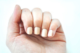 Jak widać, zmieniłam kształt paznokci, przez co są ekstremalnie krótkie. Dawno nie nosiłam kwadratów, bo po zdjęciu żelu nie chciało mi się z nimi kombinować. Poza tym chciałam je wzmocnić, dlatego też piłowałam je na okrągło. Za jakieś 3 tygodnie spodziewam się idealnego kształtu ;) Ale do rzeczy. Lakier ma 8 ml i standardowy wąski pędzelek, za którym nie przepadam. Mimo to, rzadka konsystencja pozwala na dość wygodne rozprowadzanie. Kryje dobrze, bo już po dwóch warstwach, a do tego nie smuży. Niestety bardzo długo schnie, a niewiele osób ma czas, żeby pół dnia chuchać i dmuchać na paznokcie. Kolor to klasyczny, elegancki beż. Efekt na paznokciach jest bardzo przyjemny.