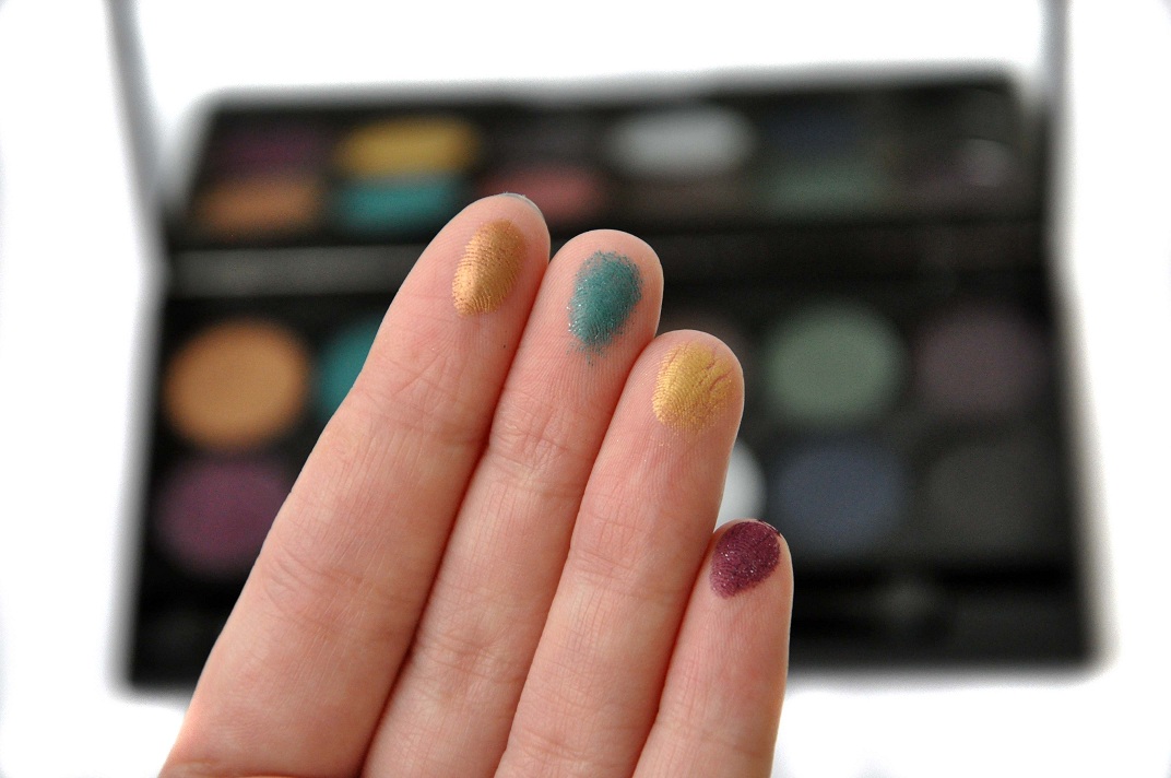 Sparkle 2 to młodsza siostra jednej z pierwszej paletek firmy - Sparkle. O ile tamta nie zebrała pozytywnych recenzji, ta zaskakuje fantastycznymi odcieniami. Większość to mat z drobinkami brokatu, ale znajdziemy też 4 klasyczne sleek'owe perły. Brokatowe zawierają w sobie dużo drobinek, które osypują się przy nakładaniu i praktycznie nie widać ich na oku (ale na policzkach i owszem, dlatego polecam wykonywać makijaż twarzy już po zrobieniu oka). Cienie charakteryzują się wspaniałą pigmentacją oraz kremową konsystencją, która sprawia, że świetnie się je rozciera i łączy ze sobą. To jest chyba pierwsza sleek'owa paletka, która nie ma ani jednego gorzej napigmentowanego cienia (Supreme na przykład miała aż 3 takie cienie, Au Naturel - 4, Oh So Special - 2). Po nałożeniu na bazę trzymają się do 12 godzin, nie blakną, nie rolują się. Niestety cienie są miękkie, przez co bardzo pylą przy nabieraniu na pędzel, szczególnie odcienie matowe.