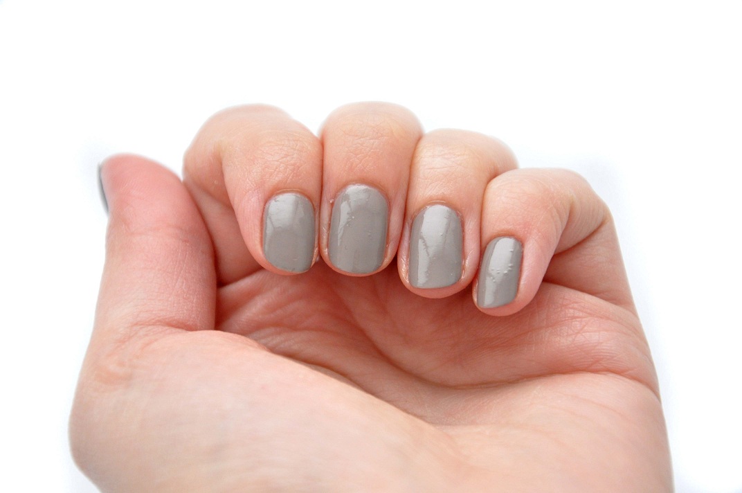 Kontrowersje we mnie wzbudził kolor. Na zdjęciach w internecie Miss Fancy Pants wydawał mi się być zimnym, brudnym brązem. Albo szarakiem z brązowymi nutami. W każdym razie "coś" brązowego w nim widziałam. Na paznokciach okazał się być szary. Po prostu szary. I chociaż w sztucznym świetle wydaje się brązowawy to w rzeczywistości jest szarością.
