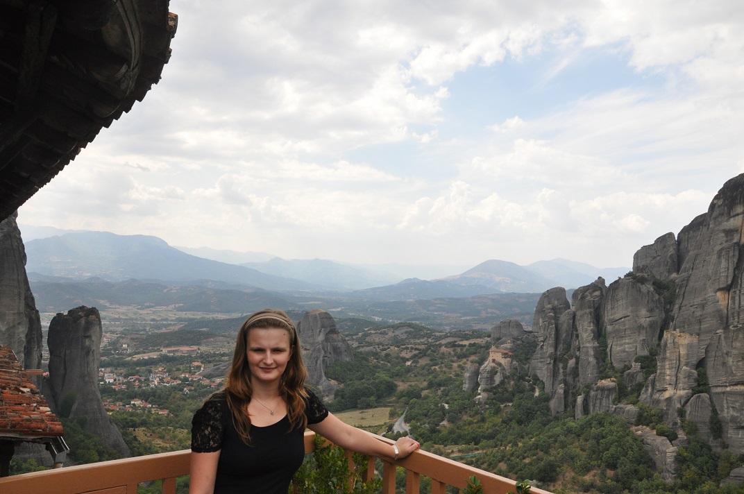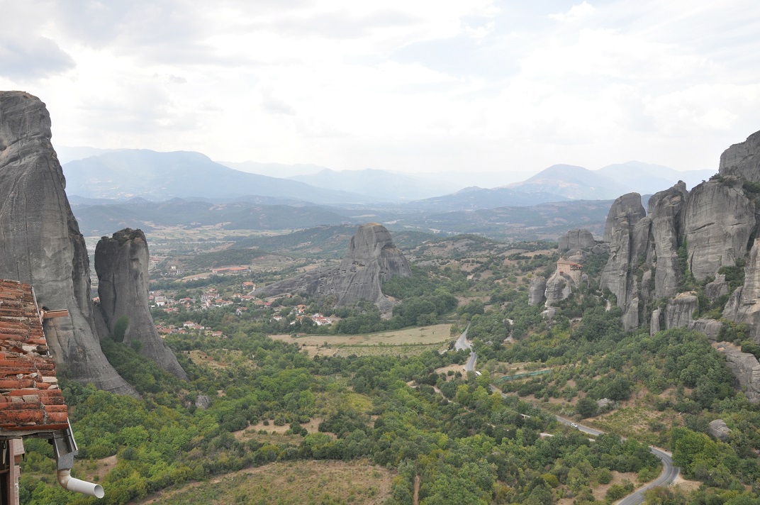 | Klasztor Świętej Trójcy + widok na Kalampaka |