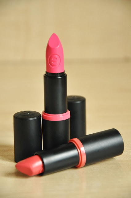 Marka Essence przygotowała na ten sezon kilka całkiem ciekawych nowości. Wśród nich znalazły się długotrwałe pomadki w dziesięciu pięknych odcieniach. Najpierw nie zwróciłam na nie wcale uwagi, od niechcenia wzięłam koralową, a następnego dnia pobiegłam po róż. Przepadłam i planuje zakup następnych.