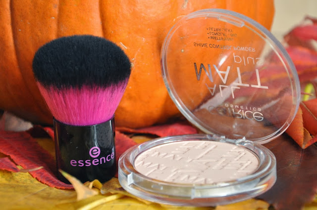 Wracając do pudru. Podkład ma satynowe wykończenie, które puder niweluje, dając prawie całkowity mat, ale mimo to ładnie wykańczając makijaż twarzy. Świetnie się na nim rozciera róż czy bronzer dając bardzo naturalny efekt, co jest jego ogromną zaletą. Jak do tej pory żaden puder nie dał mi tak dobrej (nie-tępej) bazy pod aplikację tego typu produktów. Jego ogromną zaletą jest to, że nie obciąża podkładu i nie powoduje tworzenie się ciasta w okolicach nosa, co często zdarza mi się z pudrem bambusowym BU. Jednak największym zadaniem takiego pudru jest utrwalenie podkładu. Radzi sobie z tym nieźle, ale mógłby lepiej. Przy nałożeniu pudru na całą twarz, buzia zaczyna się świecić w strefie T po około 3 godzinach, a przecież w połączeniu z podkładem z tej samej serii spodziewałabym się dłuższego efektu matującego. Poradziłam sobie z tym problemem w ten sposób, że All Matt Plus nakładam na policzki, nos i brodę, a problematyczne czoło i miejsca pod "noskami" okularów utrwalam pudrem sypkim z Essence albo bambusowym z BU. Taki duet zapewnia mi dłuższy efekt zmatowienia na twarzy i utrwalenia.