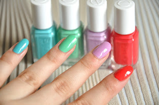Chciałam rozpocząć paznokciową prezentację Essie Resort 2013 od przepięknego turkusu, ale po drodze w ręce wpadła mi równie piękna zieleń. I pewnie zrobiłabym mu zdjęcia i schowała w jakimś folderze na później, gdyby nie fakt, że w przypadku First Timer'a bardzo się zawiodłam. I nie chodzi tu o irytująco-wkurzająco-beznadziejny amerykański pędzelek, który, moim zdaniem, już dawno powinien być wycofany z rynku. Chodzi o kolor, który jest przepiękną stonowaną pistacją, aż do pierwszego przeciągnięcia po nim topem. Byle jakim, niezależnie od tego, czy malowałam po nim Seche Vite, Good To Go, czy innymi bezbarwnymi lakierami, działo się to samo - lakier zmieniał kolor. Z pięknego odcienia wyszły jakieś jaskrawe tony i odcienie kiwi. Na dodatek nierównomierne. O ile świetnie to widać w rzeczywistości, to na zdjęciach ni w ząb nie mogłam tego ująć, widać tylko, że lakier jest ciemniejszy niż w buteleczce i to niewiele. W rzeczywistości jest duuuużo ciemniejszy, jaskrawszy i brzydszy, ale musicie mi wierzyć na słowo, bo na zdjęciach jest ładny. Po prostu ładny, a ja marzę, żeby właśnie tak wyglądał w rzeczywistości.