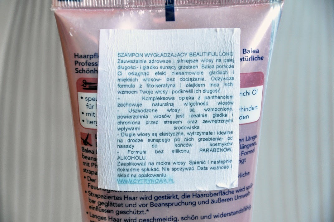 Balea to jedna z tych firm, które za niską cenę oferują świetną jakość - oczywiście tak tylko czytałam, bo dopiero od niedawna mogłam się przekonać o prawdziwości tej tezy. Cytrynowa.pl długo kusiła swoim asortymentem, ale dopiero wygładzający szampon do długich włosów i żel pod prysznic o zapachu migdałowego kwiecia skusiły mnie na tyle, że pozwoliłam sobie na zakup. Patrycja, blogerka i właścicielka sklepu, dorzuciła mi gratisy tej samej firmy - maseczkę i próbkę odżywki z tej samej linii, co zamówiony przeze mnie szampon. I to właśnie szampon idzie na pierwszy ogień.