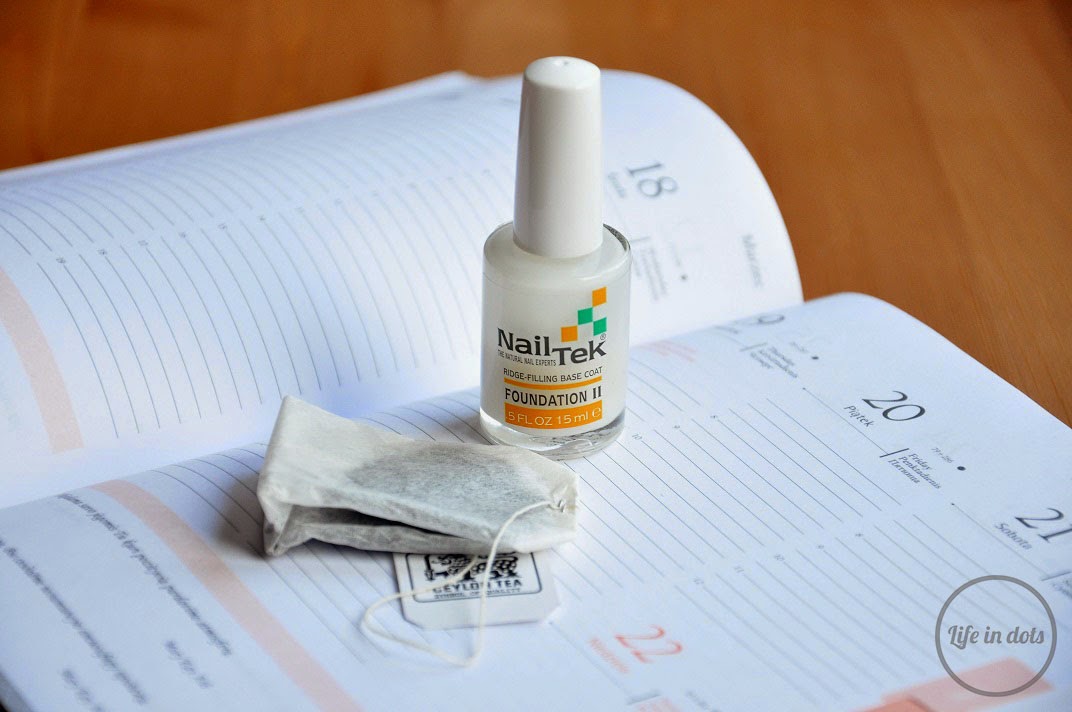 Czasami gdy mam mało czasu brakuje mi cierpliwości do moich paznokci. Pozostawiam je więc nie pomalowane, przez co są bardziej podatne na uszkodzenia. Okazuje się, że jest bardzo łatwy sposób, żeby taki nadłamany paznokieć naprawić. Wystarczy torebka herbaty i lakier. Torebkę należy wyciąć w pożądany kształt i przykleić do paznokcia za pomocą bezbarwnego albo mlecznego lakieru. Takie uzupełnienie wygląda bardzo naturalnie, a mimo to jest dość wytrzymałe i trwałe by można było z nim sprzątać, gotować i żyć przez jakiś tydzień.
