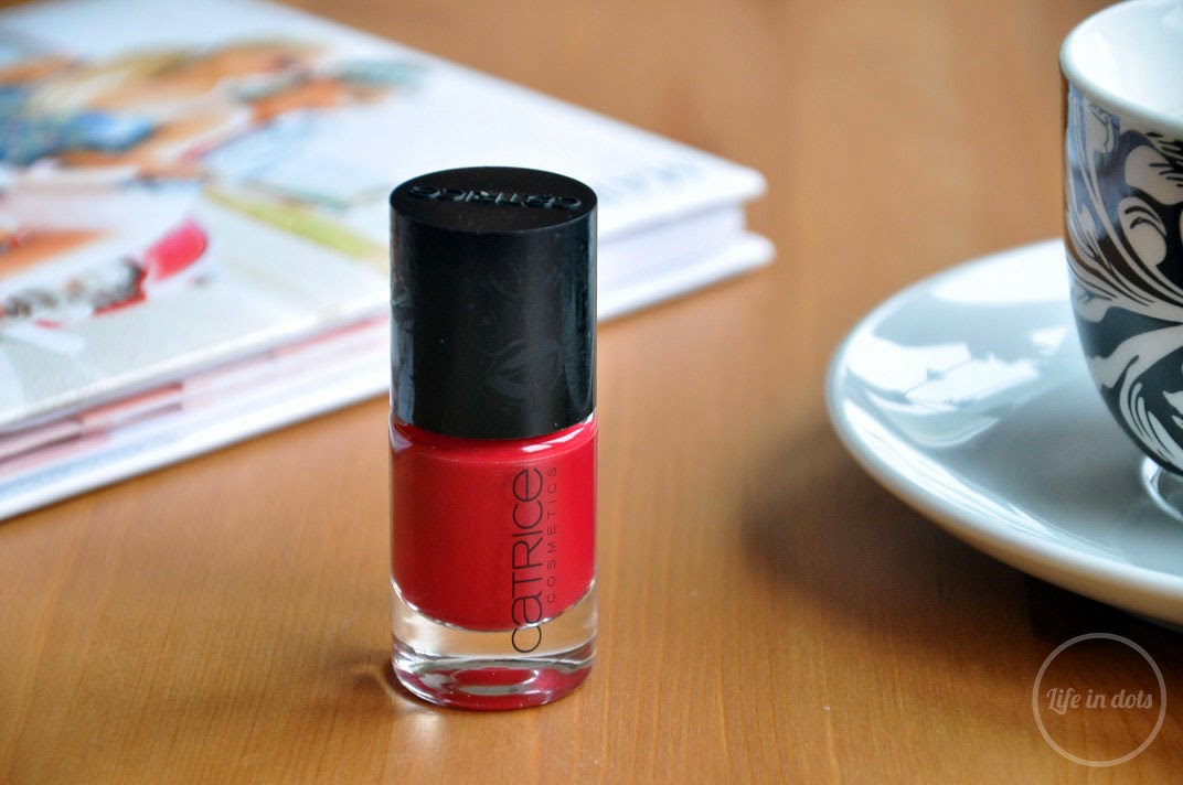 Czerwień królowała w styczniu. Najczęściej w postaci głębokiej, intensywnej czerwieni Roaring Red z limitki Feathers & Pearls Catrice.