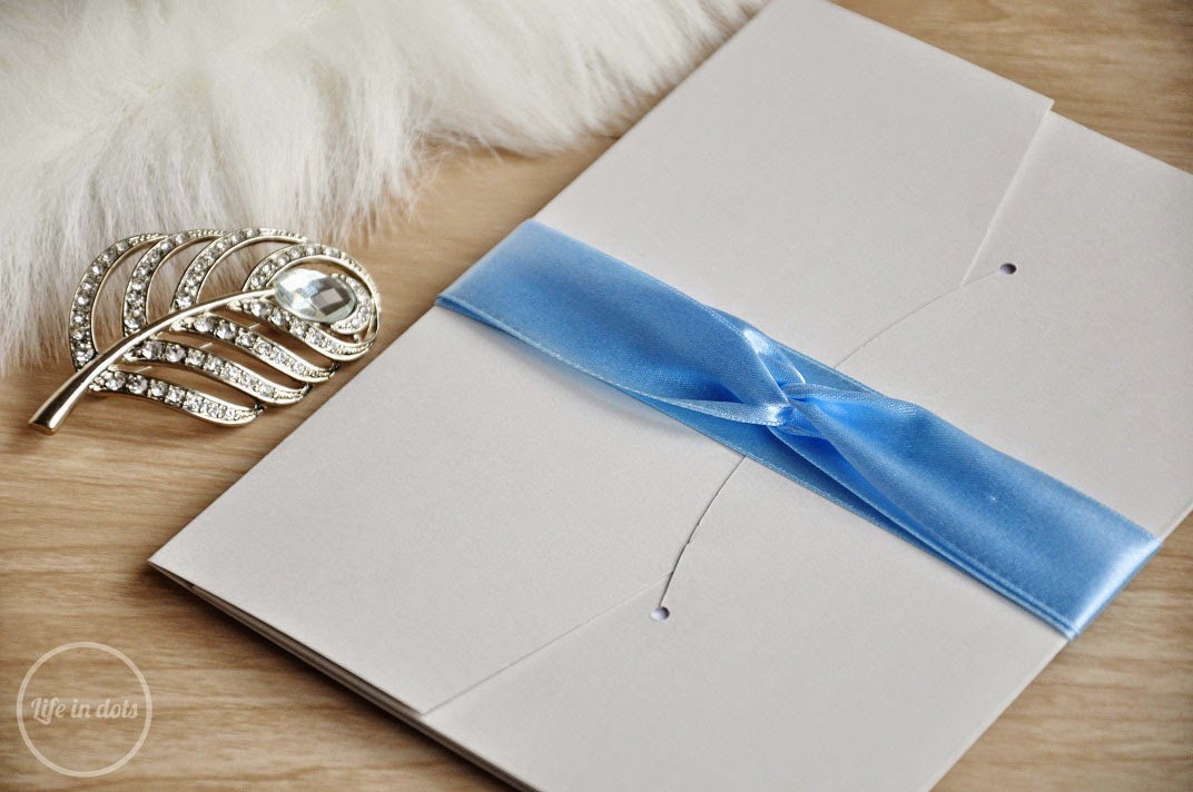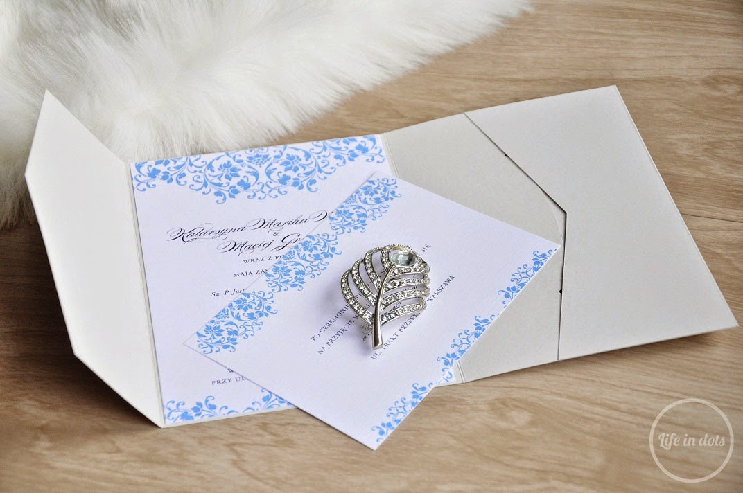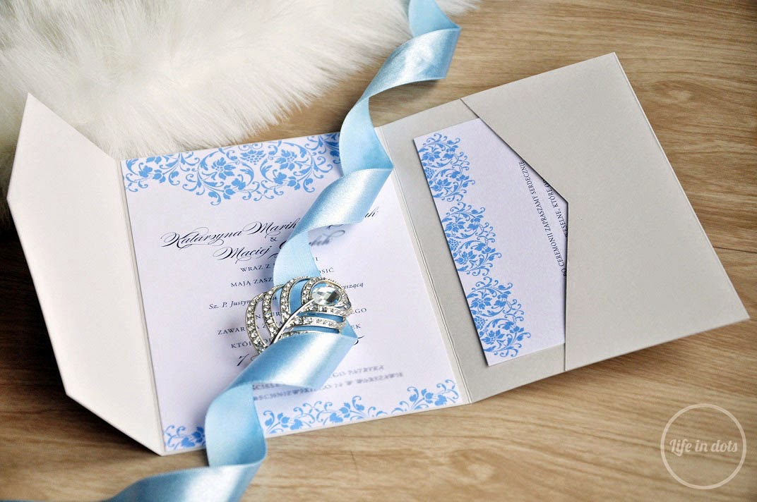 UsuńZamówiłam zaproszenie France. Ogólnie nie podobało mi się wykonanie i jakość oraz materiał folderu. Do tego zaproszenie przyszło jakieś takie wymięte i niekompletne (brak opaski). Patrząc na nie nie wiedziałam, za co wołają sobie 11 zł. No i wzięłam granatowy folder, więc wyglądało jak zaproszenie na stypę.