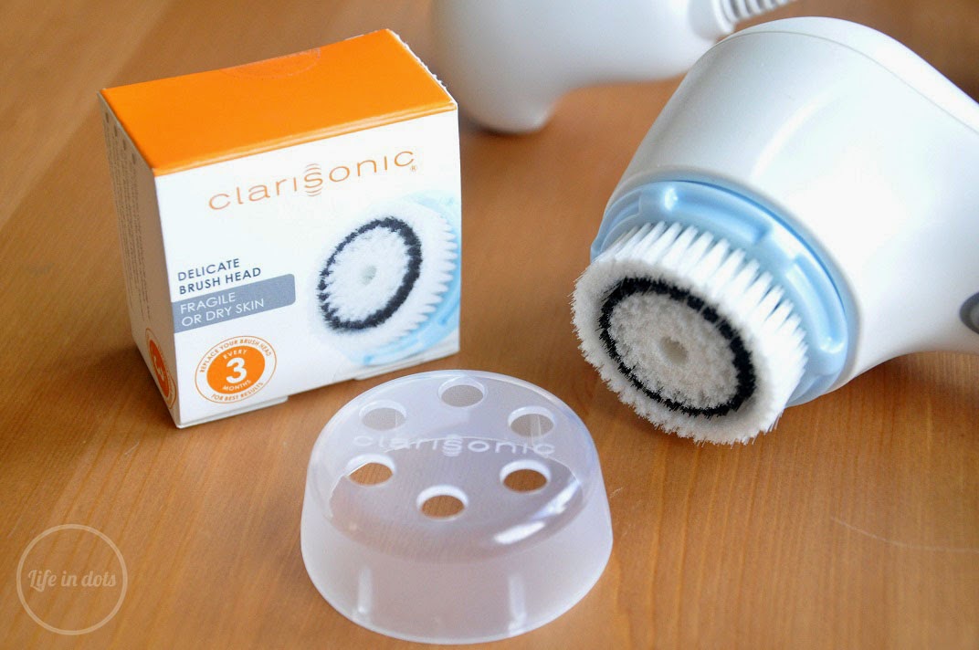 Warto jednak przyglądać się reakcji skóry i zmienić rodzaj głowicy w razie potrzeby. Zwracam uwagę, że moja skóra jest mieszana, naczyniowa, wybitnie wrażliwa i alergiczna ze względu na Atopowe Zapalenie Skóry. Dla mnie wersja Sensitive była dobra przez pierwsze kilka tygodni, następnie musiałam zmniejszyć częstotliwość użytkowania szczotki z codziennego na 2-3 razy w tygodniu, ponieważ skóra zaczęła reagować zaczerwienieniem. Gdy nadszedł czas na wymianę głowicy zdecydowałam się na delikatniejszą wersję Delicate i wszystko wróciło do normy. Codzienne oczyszczanie nie powoduje podrażnień, a gdy chcę zedrzeć naskórek po prostu nie moczę szczotki i wykonuję oczyszczanie „na sucho”. Warto wspomnieć, że zalecany „czas życia” głowicy to 3 miesiące, które ja staram się przedłużać odpowiednim dbaniem o głowicę. Po każdym umycia piorę ją w mydle, odkażam płynem antyseptycznym i nie nakładając nakładki zabezpieczającej suszę w ciepłym miejscu. Przechowywanie jej w łazience, w szafce albo nawet nakładanie nakładki przy dużej wilgotności włosia może spowodować rozwój bakterii i grzybów, które są niebezpieczne dla wyglądu naszej skóry, a także dla samej głowicy, którą trzeba częściej wymieniać.