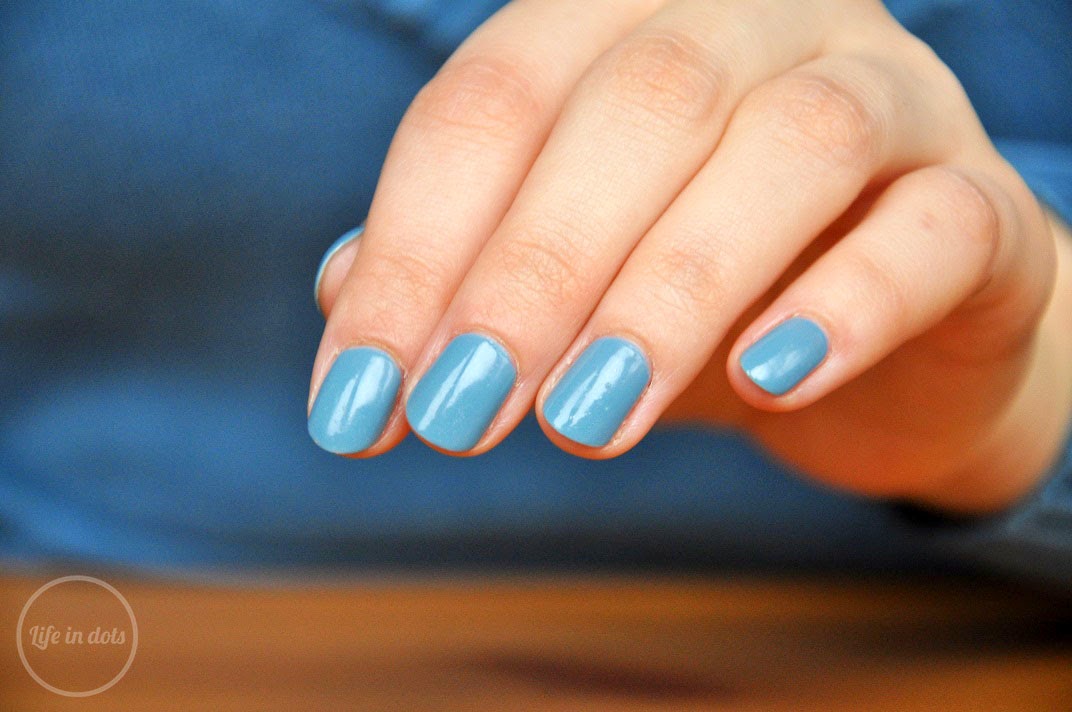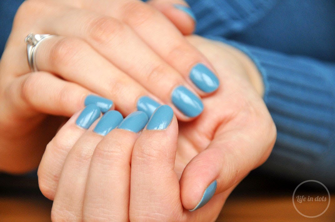 Opakowanie i formuła tej serii jest niezmienna. 10,5 ml rzadkiego, ale dobrze kryjącego lakieru w szklanym opakowaniu. Świetnie się rozprowadza spłaszczonym pędzelkiem i szybko schnie. Odcień 15, który jest bohaterem dzisiejszego posta to szary błękit, który kojarzy się z pochmurnym, deszczowym niebem albo jeansami. Ocień ten nie powoduje, że dłonie są szarawe czy fioletowawe i świetnie wygląda nawet przy bladej skórze. Bardzo ładnie się prezentuje zarówno na krótkich jak i długich paznokciach komponując się z wieloma stylizacjami z użyciem nieśmiertelnego jeansu. Wydaje mi się, że ten odcień będzie fantastyczną bazą do graficznych zdobień, co zamierzam niedługo sprawdzić ;) Lakier ten ma kremowe wykończenie, które można podbić nabłyszczającym top coatem, co zrobiłam do zdjęć na bloga. Trzyma się na paznokciach bardzo dobrze, jak inne lakiery z tej serii.