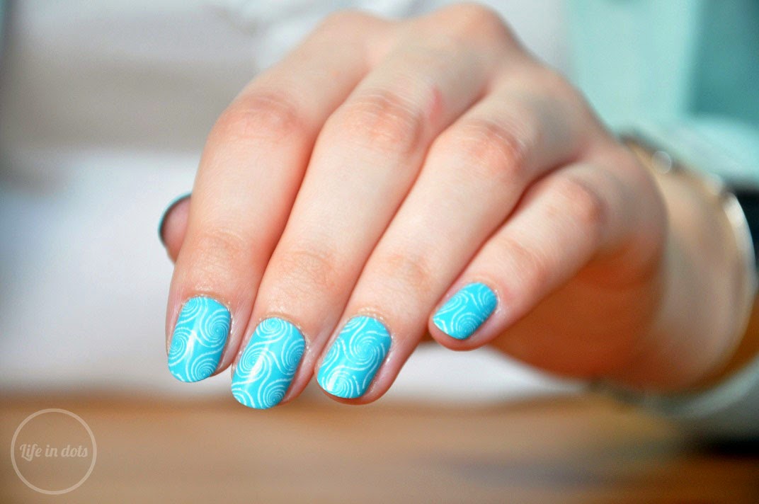 Czasami do szczęścia brakuje tylko zabawnych, kolorowych paznokci. Takich jak te, które chciałabym Wam pokazać dzisiaj. Jeden z moich ulubionych wakacyjnych lakierów ozdobiłam stemplami wykonanymi przy pomocy fantastycznej płytki do stempli BornPretty Store BP-L003. Tym razem zdecydowałam się na zakręcony wzór w bieli, który jak zwykle okazał się świetnie wycięty i łatwy do przeniesienia na paznokieć.