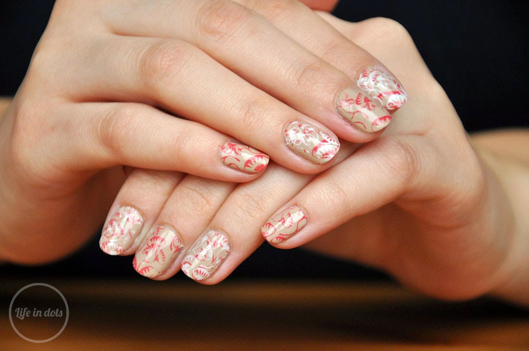 Stali czytelnicy bloga wiedzą, że preferuję nowoczesne, graficzne, czy geometryczne zdobienia na paznokciach. Nie stronię od jednolitych kolorów i akcentów w postaci brokatowych dodatków. Ot, taki styl. Jednak od czasu do czasu nabieram ochoty na coś romantycznego. Inspiracją do dzisiejszego manicure jest płytka BP-L001 od BornPrettyStore, którą pokazywałam Wam przy okazji różanego manicure. Wciąż uważam, że jest to naprawdę fantastyczne źródło pięknych wzorów do zdobień. Dzisiaj jednak chciałabym Wam przedstawić drugą nowość od BPS – czerwony lakier do stempli.
