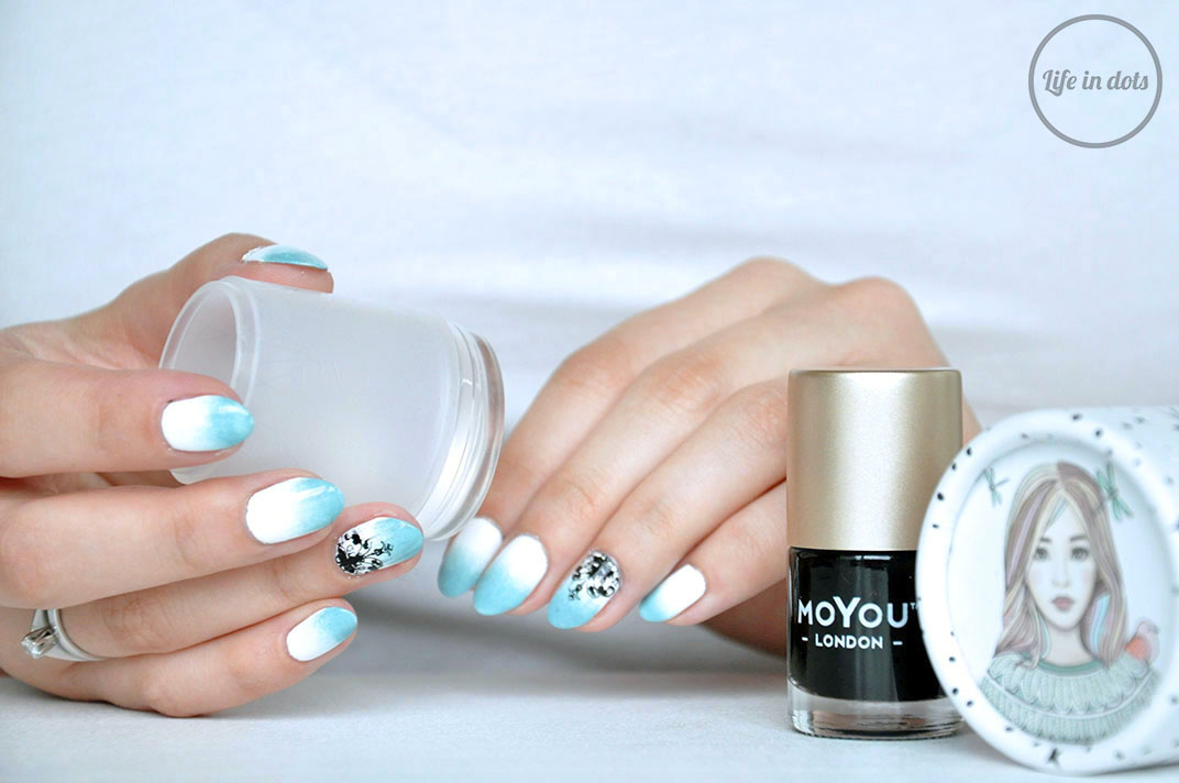 Manicure ombre od dłuższego czasu należy do najmodniejszych trendów w stylizacji paznokci. Chociaż jest to definitywnie „brudne” zdobienie wymagające dodatkowej ochrony skórek i wałów paznokciowych, jest jednocześnie jednym z najłatwiejszych. I najbardziej imponujących! Połączenie bieli z szarawym błękitem z jesiennej kolekcji Essie jest zarówno nowoczesne i kobiece.