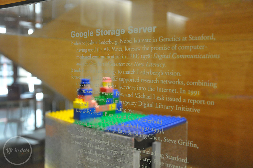 Hoover Tower to najwyższa wieża Stanford University o wysokości 87 metrów wybudowana w 1941 roku, dokładnie 50 lat od rozpoczęcia działalności uczelni. Fundatorem tej biblioteki i archiwum był Herbert Hoover, później 31-szy Prezydent USA. Jednak to nie historia kusi setki turystów każdego dnia do odwiedzenia tej wieży, a taras widokowy, z którego można podziwiać ogrom kampusu Stanforda, a w pogodne dni nawet odległy zarys budynków San Francisco, co i nam się udało! Hoover Tower tylko kilkanaście kroków dzieli od najstarszej części udzelni – Main Quad, na którym został wybudowany Kościół upamiętniający założyciela Uczelni. Stanford Memorial Church to “klejnot architektektoniczny” zaprojektowany w stylu romańskim w duchu amerykańskiego renesanu. Mi jednak w dziwny sposób cały Main Quad ze swoim dziedzińcem z palmami, krużgankami z korynckimi kolumnami i ozdobnymi, rzeźbionymi ścianami przypomina obrazki z książek o historii Hiszpani. Nie da się jednak ukryć, że jest to niesamowite miejsce, które zachwyca swoim wnętrzem i spokojną, leniwą atmosferą. Co ciekawe, Main Quad był dwukrotnie odbudowywany po trzęsieniach ziemi w XX wieku. Swoje ostatnie kroki na kampusie Stanforda skierowaliśmy w stronę Jen-Hsun Huang Engineering Center, gdzie znajduje się pierwszy serwer Google stworzony przez studentów Stanford, którego obudowa zbudowana została z… klocków LEGO.