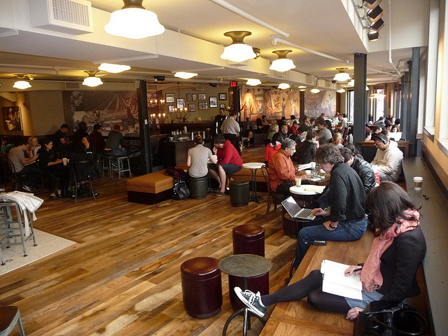 Kiedy chodziłam na kawę w Polsce był to rodzaj wydarzenia, który celebrowałam z przyjaciółmi bądź rodziną w klimatycznej kawiarence z subtelną muzyką i pysznym napojem w uroczym kubku. W Ameryce nie chodzi się na kawę, a po kawę. Idąc ulicą wielkiego miasta jestem przekonana, że w promieniu kilometra znajdziecie co najmniej kilka kawiarni, w tym uwielbianego (albo znienawidzonego) przez wszystkich Starbucks. Wprawdzie popularność tego przybytku równa się tutaj Dunkin Donuts, który twierdzi, że Ameryka działa na pączkach, ale to właśnie Starbucks owiany jest jakimś dziwnym hipsterskim mitem. Trudno mi stwierdzić ile ten mit ma wspólnego z prawdą, ale nie da się zaprzeczyć, że zielone logo na kubkach cieszy się powodzeniem. Może to ta ilość kawiarni, może dolewki za parę centów (o których czytałam, bo sama nie próbowałam), może smak, a może benefity na karcie kredytowej za kupowanie tej konkretnej kawy.