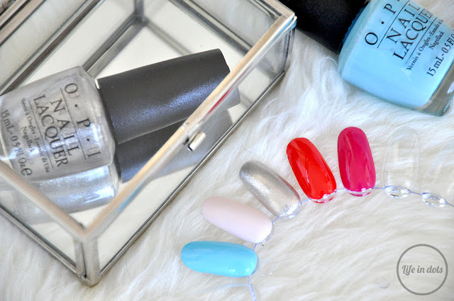 Zdecydowałam się na 5 pełnowymiarowyh buteleczek w różnych odcieniach. Jako pierwszy do koszyka wpadł mi I Believe in Manicures w nieśmiertelnym odcieniu Tiffany’s blue. Następnie zdecydowałam się na pastelowy róż z ze złotymi drobinkami Breakfast at Tiffany’s, który jest wyjątkowy ze względu na swoje satynowe wykończenie, a także płynne srebro Five-and-Ten, które porównam do mojego ukochanego Jiggle Hi, Jiggle Low. Jako ostatnie do koszyka trafiły dwa intensywne odcienie: strażacka czerwień Meet My “Decorator” oraz romantyczna malina Apartment for Two.