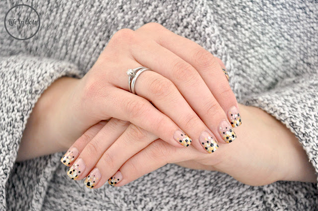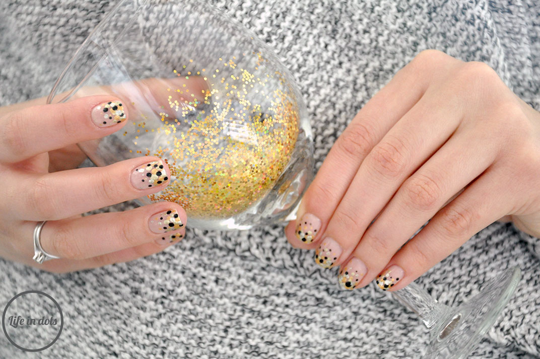 Wśród wigilijnych stylizacji zdecydowanie dominuje czerwień. Czerwone usta, strój i paznokcie. Chociaż sama uwielbiam głęboką, elegancką i ultra kobiecą czerwień, to pomyślałam, że w tym roku paznokcie mogłyby być bardziej wyrafinowane. Tak zrodził się pomysł na prosty w wykonaniu, ale bardzo efektowny dotticure.