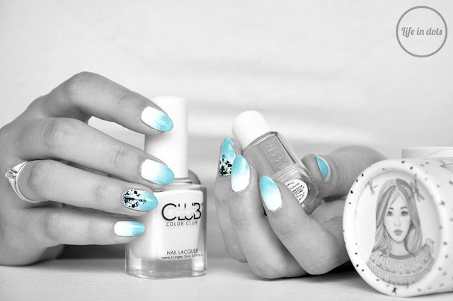 Manicure ombre od dłuższego czasu należy do najmodniejszych trendów w stylizacji paznokci. Chociaż jest to definitywnie „brudne” zdobienie wymagające dodatkowej ochrony skórek i wałów paznokciowych, jest jednocześnie jednym z najłatwiejszych. I najbardziej imponujących! Połączenie bieli z szarawym błękitem z jesiennej kolekcji Essie jest zarówno nowoczesne i kobiece.