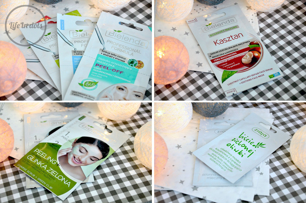 Bielenda należy do jednej z najczęściej kupowanych przeze mnie drogeryjnych marek, przynajmniej w kategorii masek za grosze na raz. Nie, żebym była wielką fanką, ale ich formuły najlepiej się u mnie sprawdzają. Serii Professional Formula zdecydowanie należy się uwaga ze względu na świetne działanie, które zaobserwowałam przy maseczkach oczyszczających. Tym razem zdecydowałam się dodatkowo na enzymatyczny peeling dotleniający oraz hydrożelową maseczkę ultra nawilżającą wobec których mam spore wymagania po zaletach oczyszczającej maski wygładzającej. Marka ta ma również w swojej ofercie ciekawą serię Kasztan stworzoną do pielęgnacji cery naczynkowej, z której znowu zdecydowałam się na maseczkę jednorazową. Wśród nowości Bielendy pojawiła się również formuła glinkowa opierająca się na peelingu i maskach na bazie glinek. Zielona wersja ładnie oczyściła skórę bez podrażnienia, więc cieszę się, że zdecydowałam się również na zakup białej. Nie mogłam też pominąć sklepu Ziaji, który odwiedzam za każdym razem po mój ulubiony szampon. Tym razem wrzuciłam też do koszyka maseczkę do cery suchej z kozim mlekiem oraz oliwkową maskę kaolinową z cynkiem.