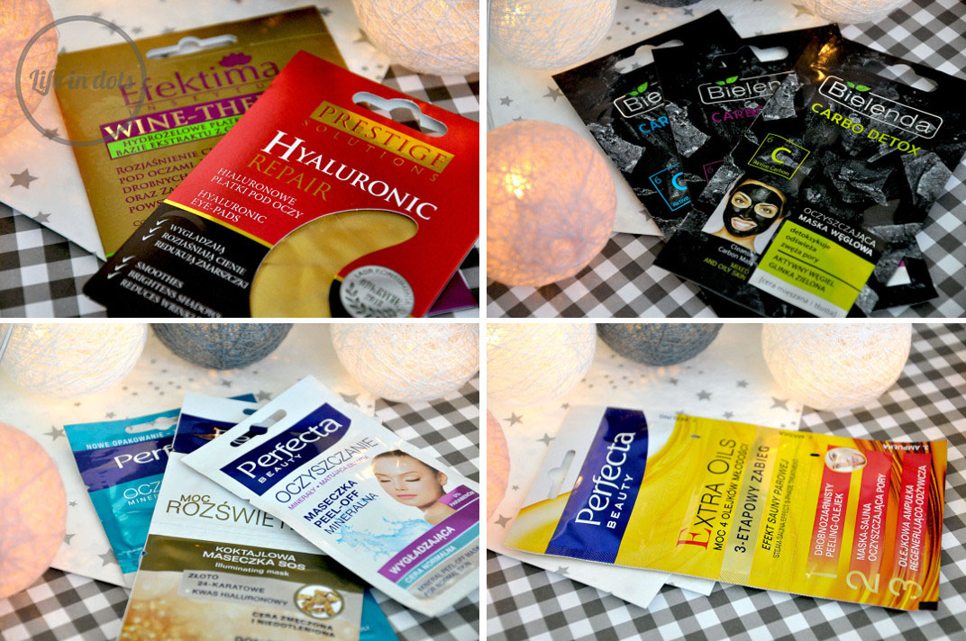 Internetowe zakupy ograniczyłam do kilku rzeczy, jednak przy każdej wolnej chwili napadałam na pobliskie drogerie łapiąc za jednorazowe maseczki. Co jak co, ale polskie marki są najlepsze pod względem działania i ceny. Zdecydowałam się więc na żelowe płatki pod oczy, nową linię Bielendy Carbo Detox oraz kilka ciekawostek Perfecty. Maseczki oczyszczające oraz peelingi tej marki sprawdzają się u mnie rewelacyjnie, tak samo jak maska rozświetlająca przed wielkimi imprezami, dlatego wrzuciłam do koszyka kilka sztuk. Z nowości skusiłam się na 3-etapowy zabieg Extra Oils, na który naprawdę szkoda zachodu. Spodziewałam się ciekawych doznań przy używaniu maski rozgrzewającej i olejkowej ampułki, ale wyszło wielkie kremowe i ciężkie „meh”. Jedynie peeling dał radę. Mam tylko jedno pytanie – gdzie w tej konsystencji producent ukrył olejki?