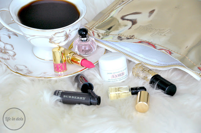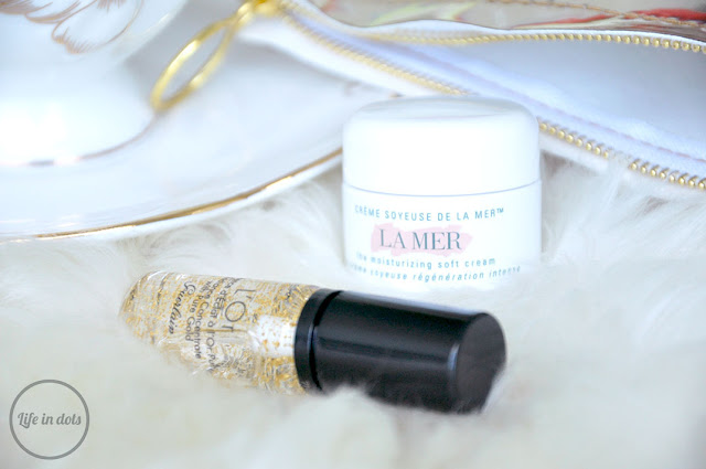 6 luksusowych miniatur produktów, w tym dwa zapachy ukryte w złotej saszetce. Do tego ładnie ilustrowana książeczka dotycząca produktów z cytatami ikon stylu. Wszystko krzyczy „I am luxurious”. I luksusowo jest, bo otwieranie tego pudełeczka to była prawdziwa przyjemność. Nie ma tutaj produktu, który nie zachwyca i nie zachęca do wypróbowania. Do tego zawartość jest bardzo przemyślana, krem, baza, tusz i pomadka to niezbędniki codziennego makijażu. Przynajmniej mojego. No może zapachy nie są do końca trafione, ale obecność kremu La Mer wynagradza mi to z nawiązką. Nie ma czego tutaj nie lubić, nie ma. Chyba, że ceny, bo jest dwukrotnie wyższa niż standardowej edycji pudełka. Jest to jednak całkiem wytłumaczalne biorąc pod uwagę fakt, że sama miniatura La Mer to wartość kilkudziesięciu dolców.