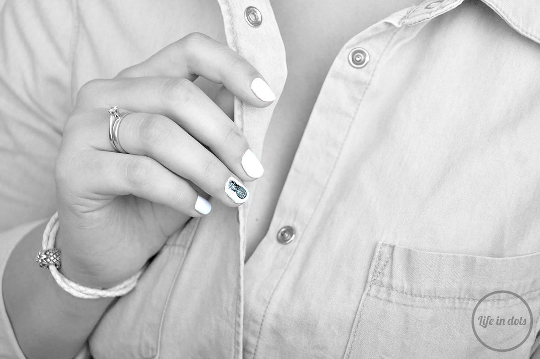 Ananasowy zawrót głowy! Ten słodki, tropikalny i bardzo charakterystyczny owoc kojarzy się z latem, zabawą, egzotycznymi wakacjami i drinkami z palemką. Potrafi być też bardzo nowoczesny i elegancki, gdy jego motyw pojawia się w aranżacji wnętrz czy biżuterii. Zainspirowana owocowym trendem i ulubioną ostatnio bransoletką, stworzyłam ten ananasowy manicure, który świetnie skomponuje się zarówno letnią sukienką, jak i jesiennym swetrem.