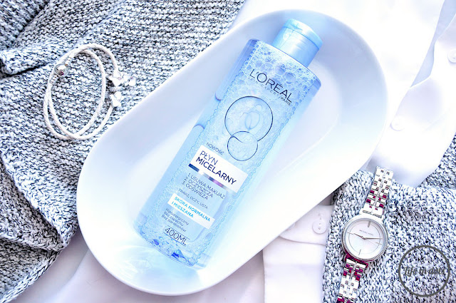 v L’Oreal Płyn micelarny do skóry normalnej i mieszanej miał zostać zastępstwem płynu Garniera, którego zużyłam kilka butelek. Nadszedł czas na zmianę i ledwo rozpoczęłam używać nowości, a już tego żałuję. Nie spodziewałam się aż takiej różnicy w jakości. Garnier zmywał wszystko bez tarcia, podrażniania i z ogromną wydajnością. L’Oreal taki nie jest. Podkład jeszcze zmyje, cienie raczej też, ale nawet zwykły tusz jest dla niego problemem. Nie ważne jak długo trzymam mocno nasączony płatek przy powiece, tusz się nie rozpuszcza, a jedynie trochę rozmazuje. Próba większego nacisku, czy tarcia powoduje podrażnienie spojówek. Największą zaletą tego płynu jest fakt, że jest okropnie nie wydajny i mam nadzieję, że szybko się skończy.